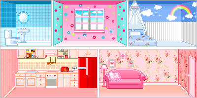 Here, I have ripped every single background from eLouai's Candybar 5 Dollmaker. Due to their origin as backgrounds for a pixel doll, they are not seamless.